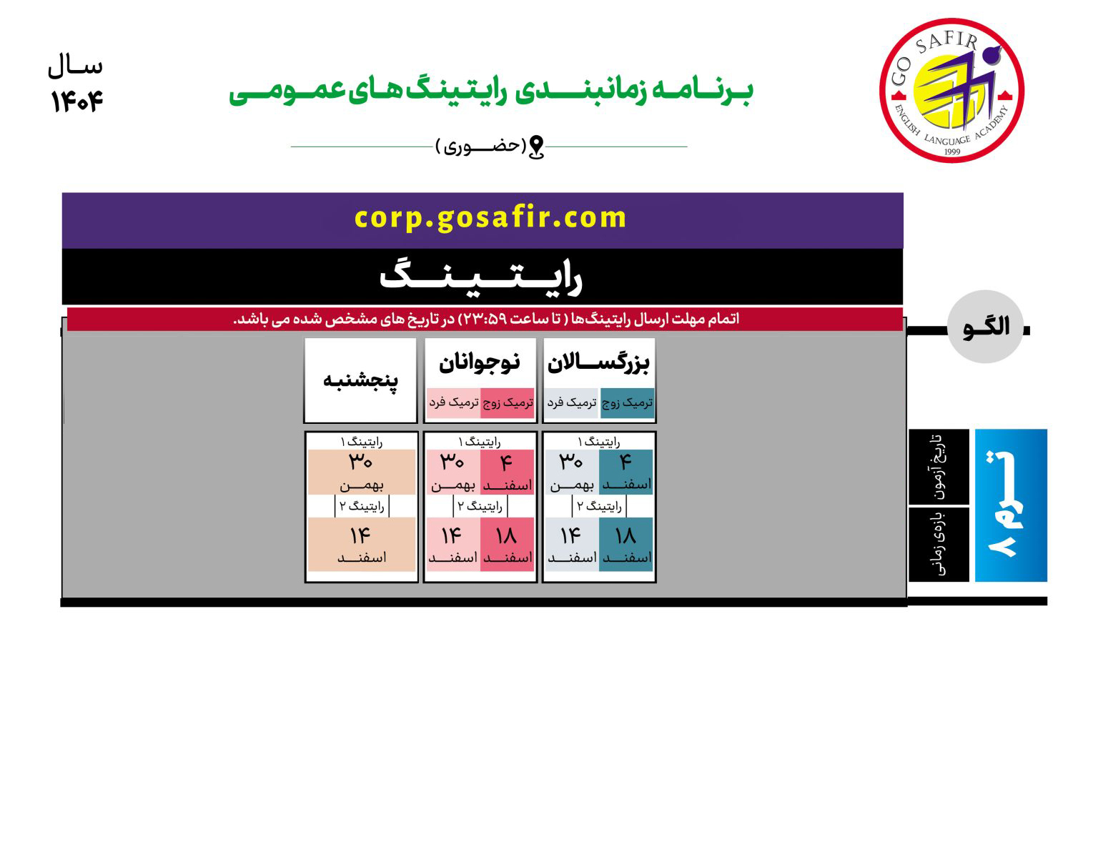 تقویم آزمون رایتینگ عمومی
