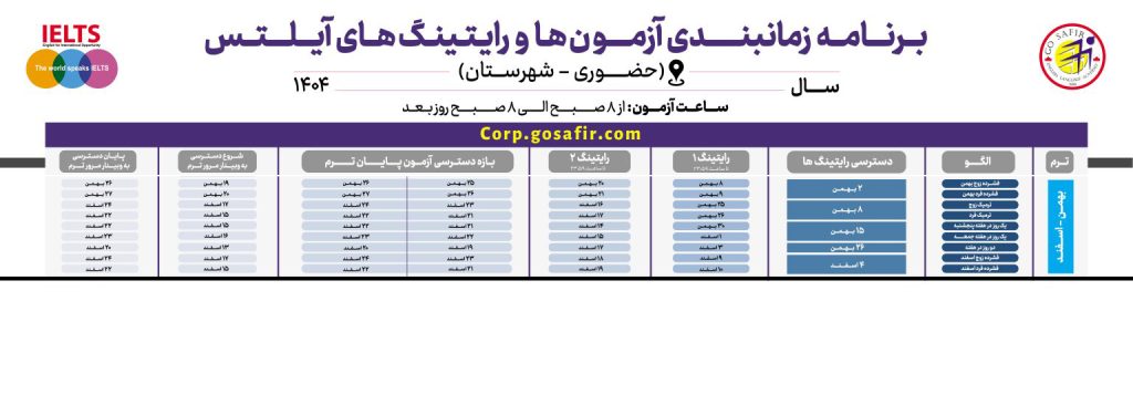 تقویم آزمون و رایتینگ آیلتس