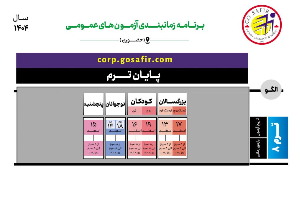 تقویم آزمون پایان ترم عمومی